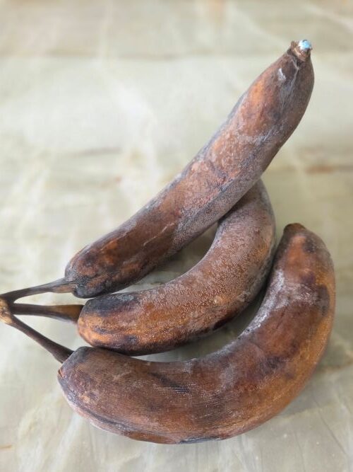 - Cut out any large brown spots in banana.