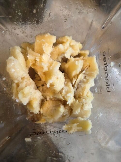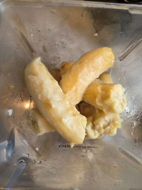 - Blend frozen bananas, alternative milk and salt.