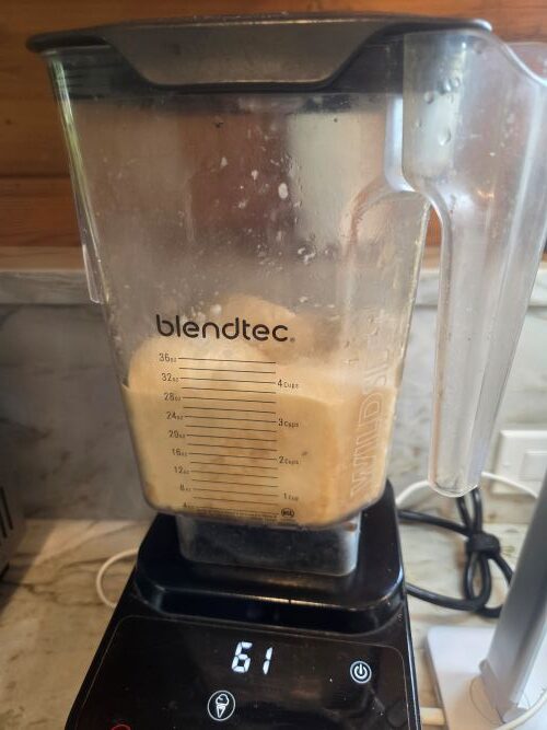 - Blend frozen bananas if you have a Vitamix or Blendtec, or other powerful blender. If your blender is not powerful, let bananas become soft then blend with alternative milk and salt. Then add pecans and freeze.
