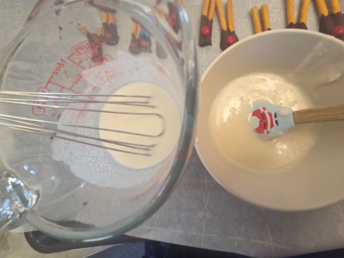 • Use icing dispenser or ziploc with small hole – wriggle over pretzel to create xmas treesπŸŽ„